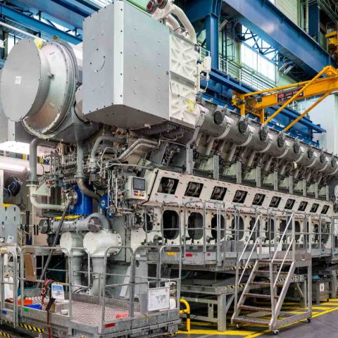 “We were of course nervous, but mostly curious,” Romain Hérault said, talking from inside the vast factory, a hall heavy with the smell of metal and machine oil, housing four test beds and rows of different engines in various stages of assembly. A total of 600 people work here, including on the 18V51/60 B100, a large engine of about 13 meters in length and almost five meters in width weighing approximately 325 metric tons.